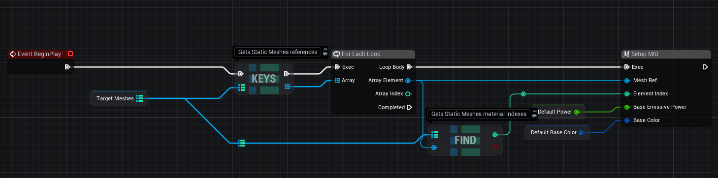 - Get Target Meshes: Retrieve the map variable containing your mesh references