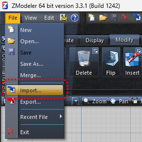 - Open ZModeler3 and import your model (e.g.,
