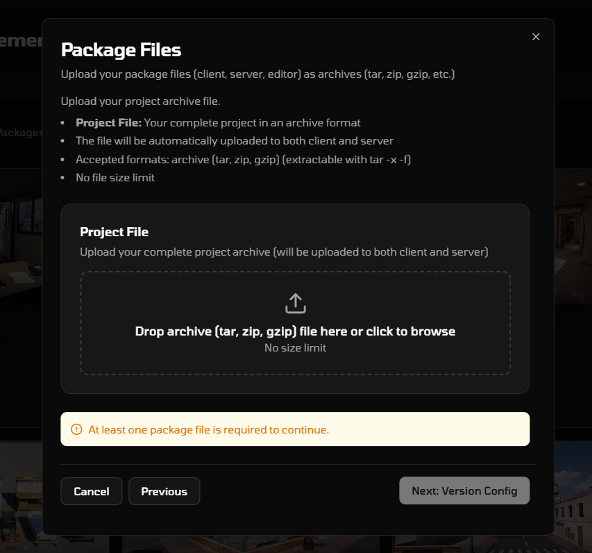 You can use Creator Hub to upload packages (such as maps, worlds, characters, and addons) created using Creator Kit to the Vault.