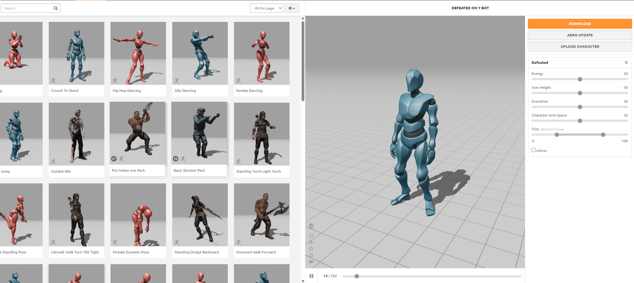 It's also possible to download animations from Mixamo.com and import them into Creator Kit for packaging with same retargeting steps done for UE4 rig-based packs.