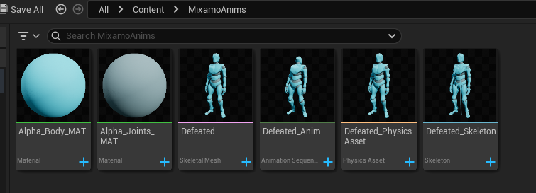 In the Content Browser, locate the main folder for the animation assets you imported in Section 1.
