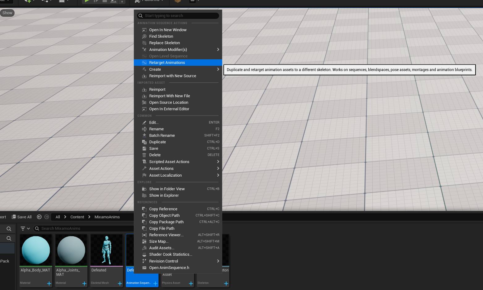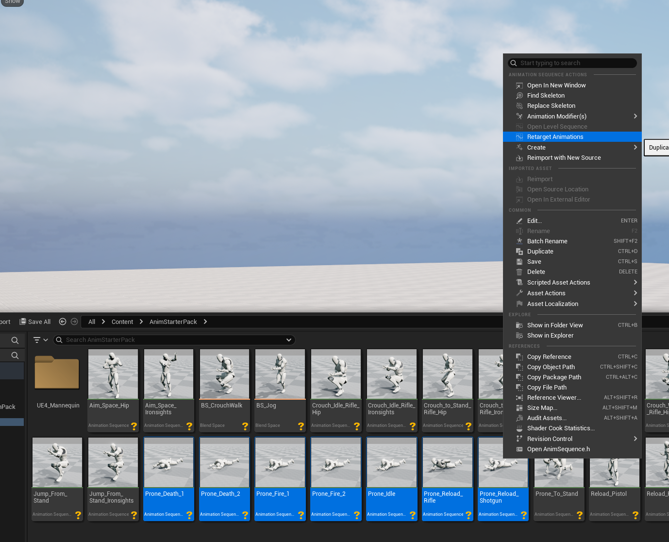 Right-click the selection and choose Retarget Animation Assets -> Duplicate and Retarget Animation Assets.