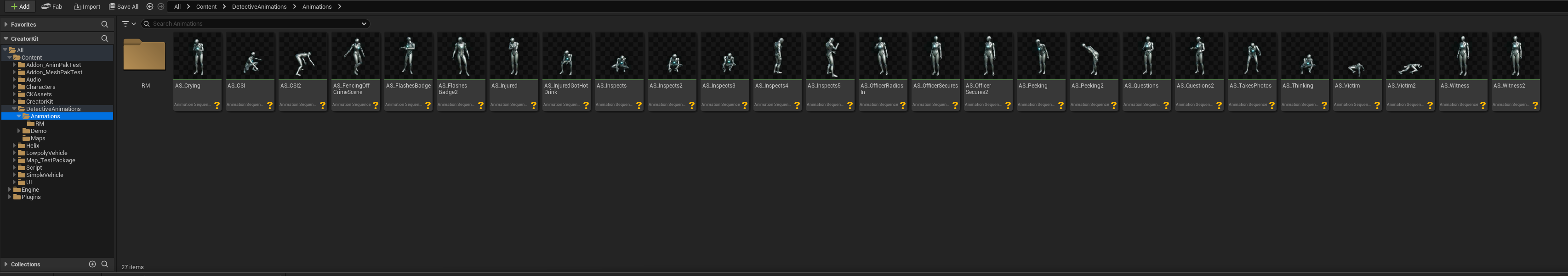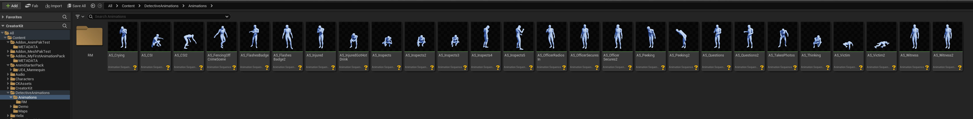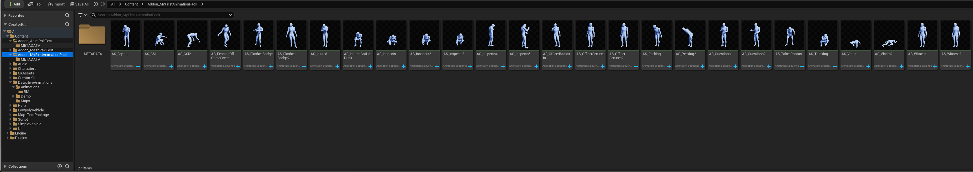 - Open the animation assets inside your package folder (e.g., Content/Addon_MyFirstAnimationPack).