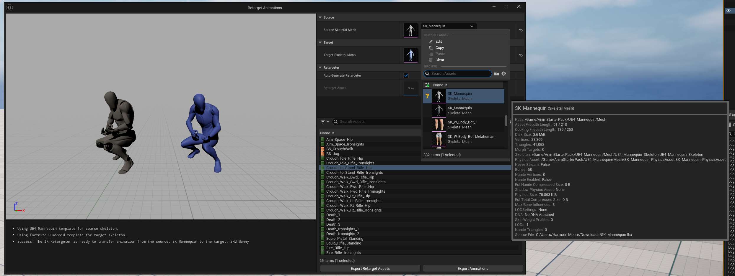 This method is for older packs built for the UE4 Mannequin or packs using a custom rig. It uses the IK Retargeting system to create new, compatible animations.