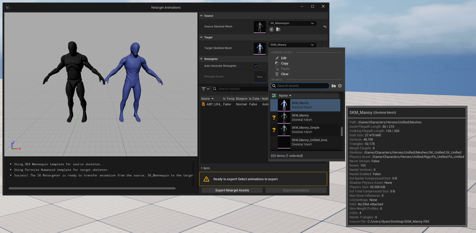 For Target Skeleton, choose SKM_Manny located in Content/Characters/Heroes/Unified/.