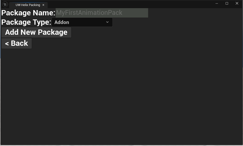 Click Add New Package. This action creates a dedicated folder for your assets (e.g., Content/Addon_MyFirstAnimationPack).
