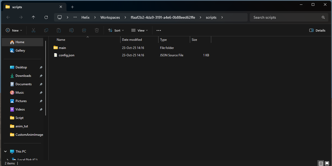 WORKSPACE_ID/scripts/main/server/main.luapath in your workspace. If the file doesn't exist, create it.-- Register a function to listen for player joined global event RegisterServerEvent('PlayerJoined', function(source) local MyCharacter = HPlayer:K2_GetPawn() local AnimParams = UE.FHelixPlayAnimParams() coroutine.resume( coroutine.create(function(delayTime) UE.UKismetSystemLibrary.Delay(_G.HWorld, delayTime) -- Our custom package is named "Addon_MyFirstAnimationPack", and animation sequence asset inside is named "AS_Crying" local result = Animation.Play(MyCharacter, '/Game/Addon_MyFirstAnimationPack/AS_Crying.AS_Crying', AnimParams, function() print('Animation Ended') end) print('Animation play result: ', result) end), 1.0 ) end) -