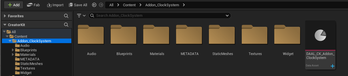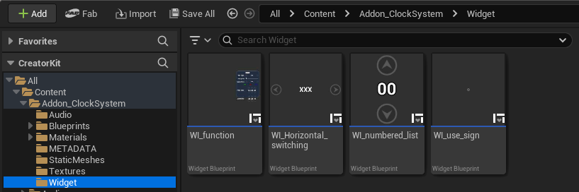 Click Add New Package. This action creates a dedicated folder for your assets (e.g., Content/Addon_ClockSystem).