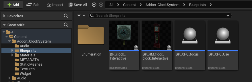 For this tutorial, we have a blueprint based clock system pack, which has a main clock actor blueprint, materials, textures, widgets, and sound files.