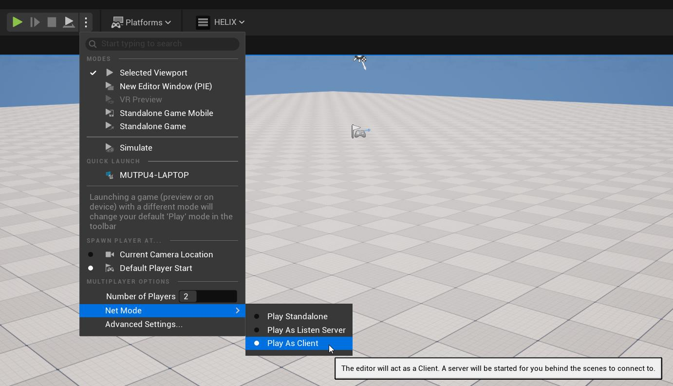 π‘ Standalone Game mode and running multiple processes for testing in general are not currently supported.